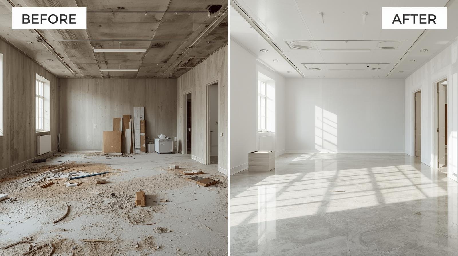 Our team understands the complexities of post-build dust removal, paint spot cleaning, and debris elimination. We follow a structured and detailed cleaning process tailored for renovation environments.